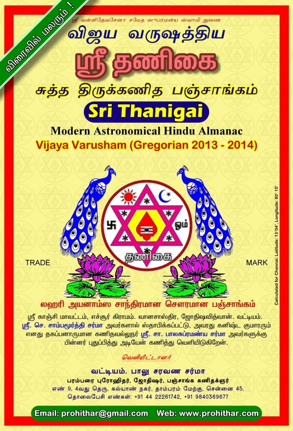 This thirukanitha panchangam a wrong practice and one could lead to thirukanitha panchangam observing festivals on wrong days and at wrong times. Vakya Tamil Panchangam from 2010 to 2022. The publishers title for the almanac for the Tamil year 2012-2013 is Asal No.